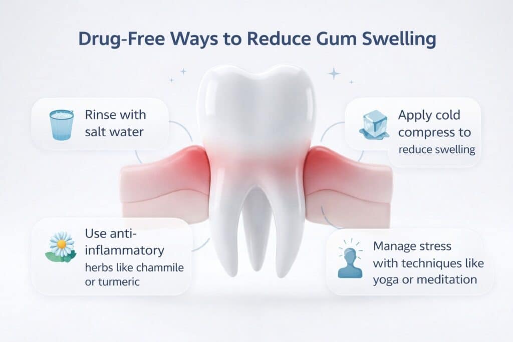 Are there drug-free ways to reduce gum swelling?